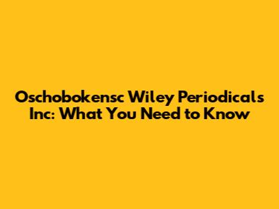 Oschobokensc Wiley Periodicals Inc: What You Need To Know